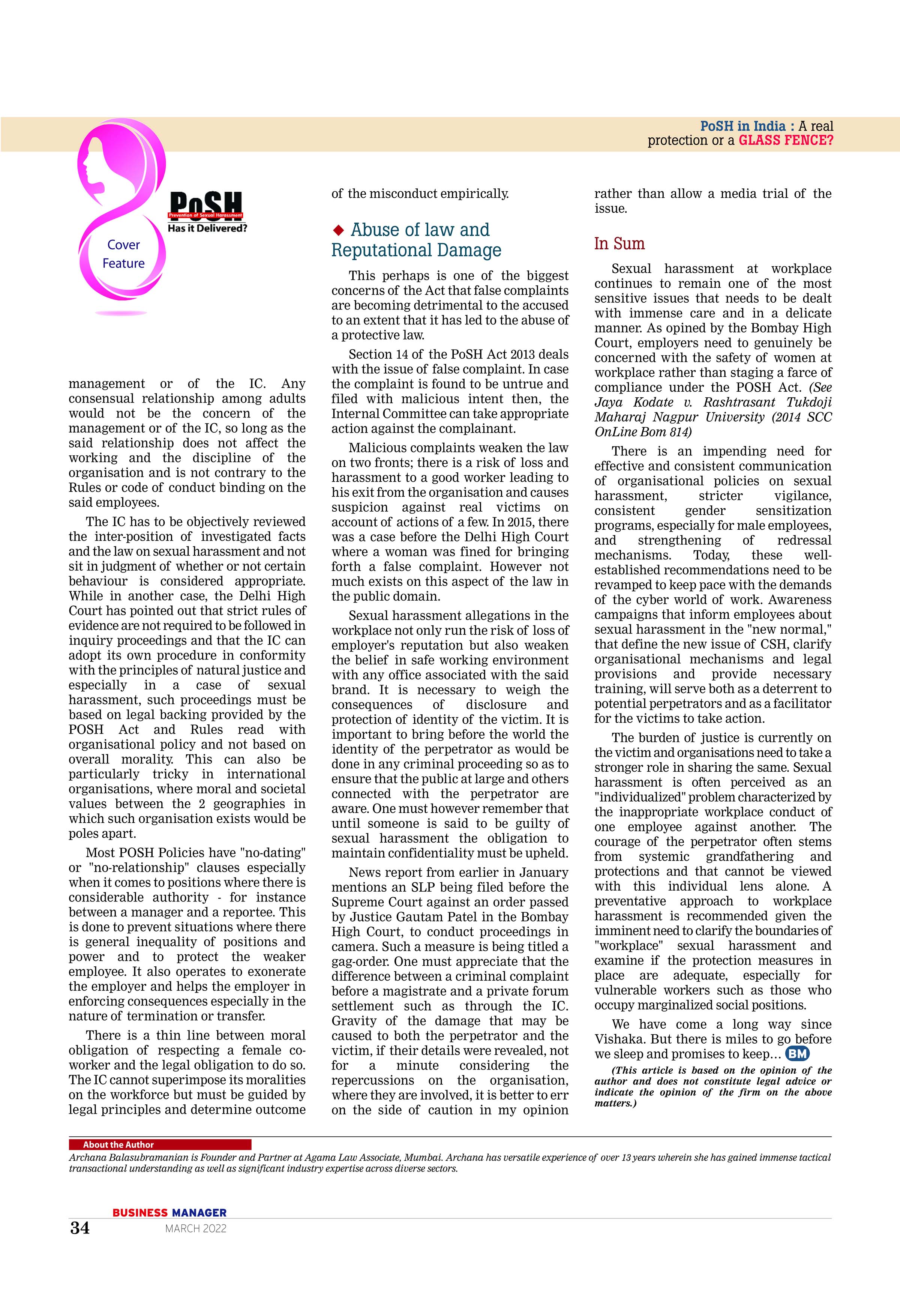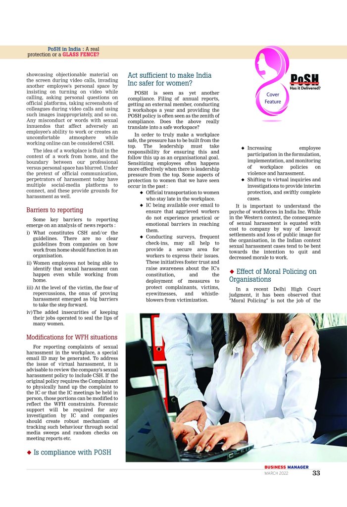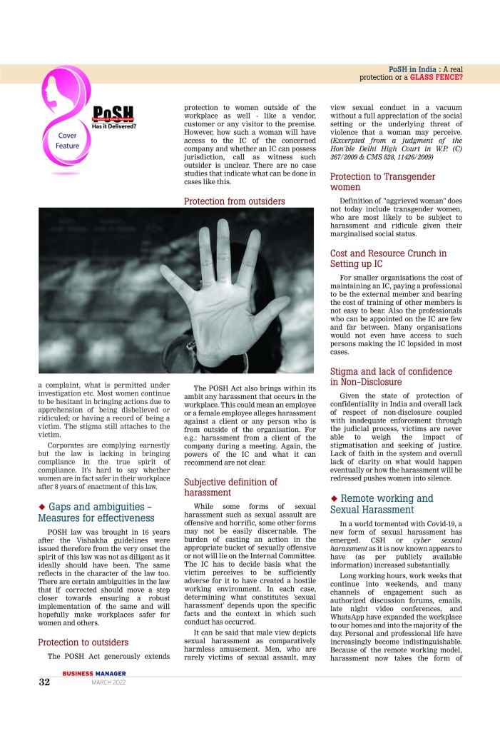 This post published by Business HR magazine, centres around the realities of functioning of POSH laws in India and practicalities surrounding the environment to assess the effectiveness of the law. Download the full article here.