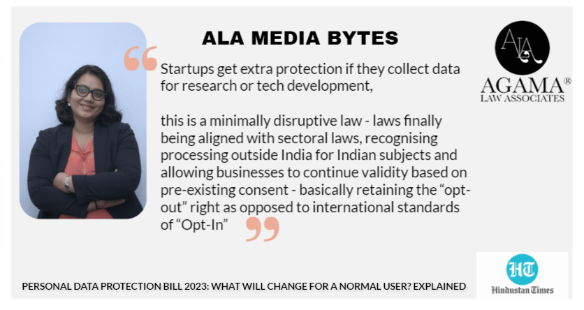 Agama Law Associates partner Archana Balasubramanian shares her views on the alignment of this Bill with sectoral laws for business operating in India in an article by Hindustan Times titled “Personal data protection bill 2023: What will change for a normal user?”