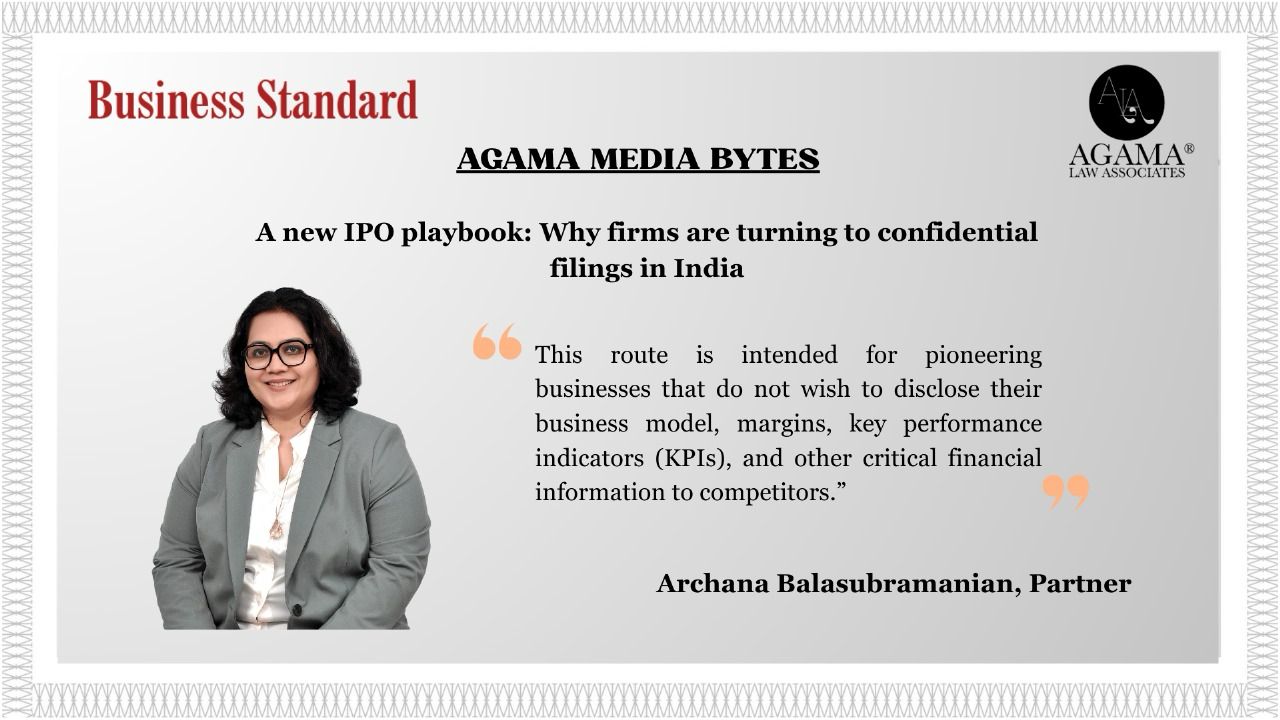We are delighted to announce that Business Standard featured our Partner Archana Balasubramanian’s insights on “A new IPO playbook: Why firms are turning to confidential filings in India