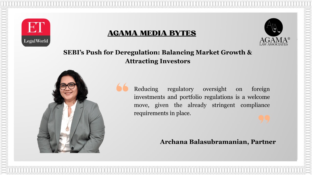 ETLegalWorld featured our Partner Archana Balasubramanian’s views on SEBI’s progressive steps toward deregulation.