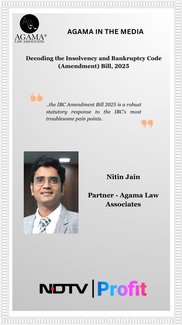 NDTV Profit featured our Partner Nitin Jain’s article on “Decoding the Insolvency and Bankruptcy Code (Amendment) Bill, 2025”